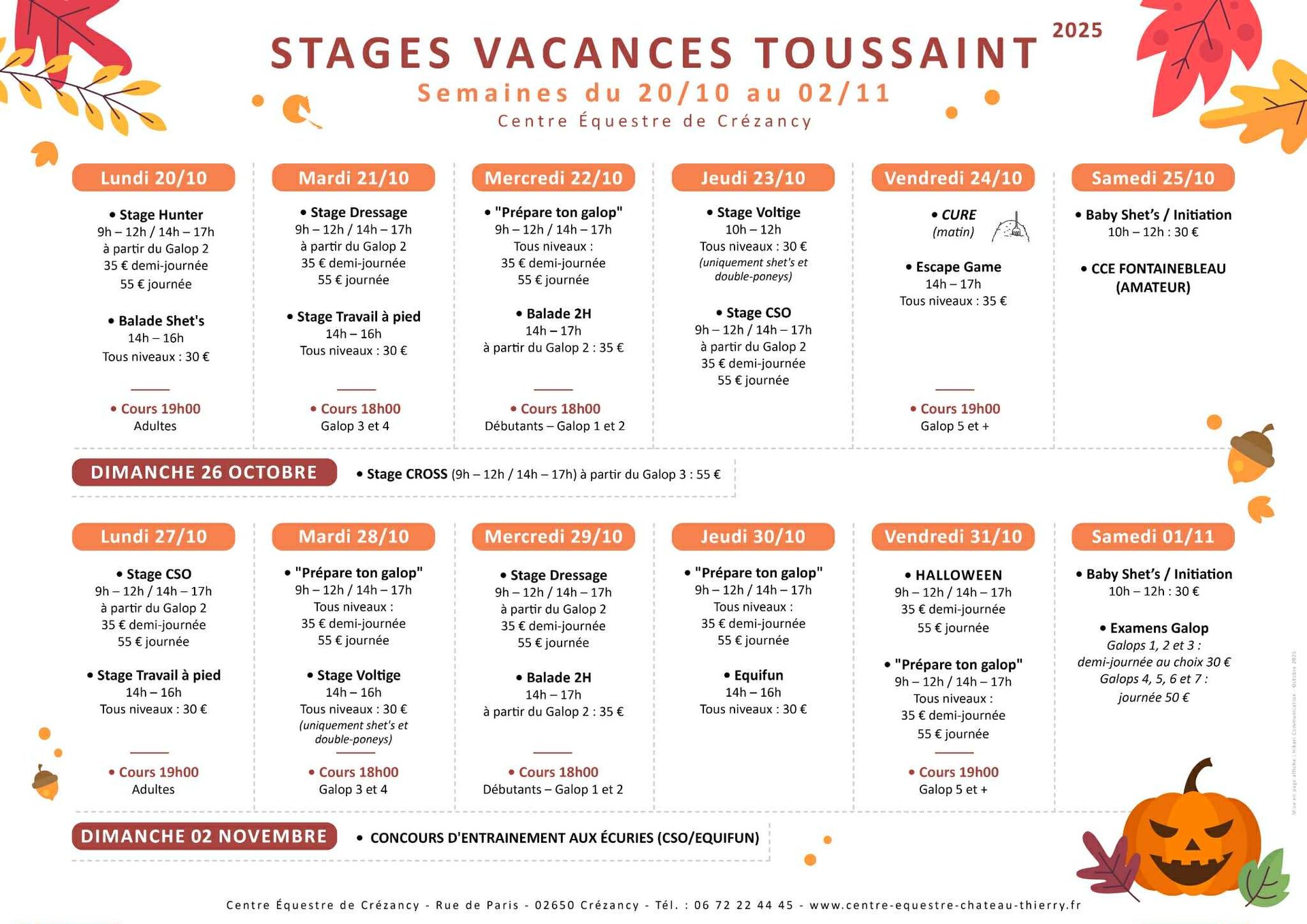 Informations, inscriptions, réservations et tarifs, directement au centre équestre ou directement en ligne via votre espace membre pour les cavaliers inscrits en 2025 !!! rubrique "ACTIVITES"